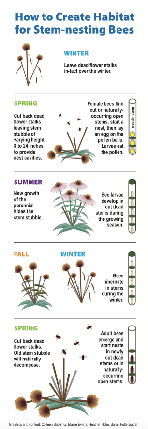 - Be a "lazy" yard keeper! Don't rake your leaves in the Fall, and leave plant stalks in the ground (or at least 8-24" of them). Leave areas of your yard to get shaggy. Don't remove dead wood.