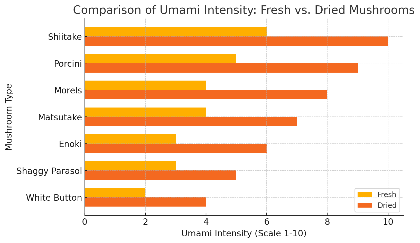 Drying mushrooms isn’t just about preservation—it’s a flavour upgrade. As moisture leaves, savoury glutamates concentrate and natural enzymes break down proteins into umami-rich compounds.